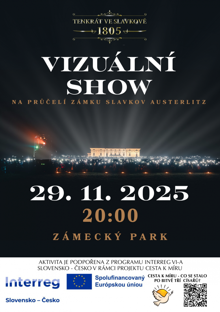 Připomínka události bitvy u Slavkova 220. výročí jejího ukončení – od setmění se slavkovský zámek promění díky audiovizuálním efektům. Opakovaně ve smyčce po celý večer, bude vyprávěn příběh od počátku Bitvy u Slavkova po její mírové řešení s apelem na přesah do dnešních dní. Ukončení bitvy totiž neznamenal definitivní konec, ale teprve začátek mírového procesu, který se odehrával v regionu po ose Slavkov-Holíč a ukončen byl v Bratislavě stvrzením míru.